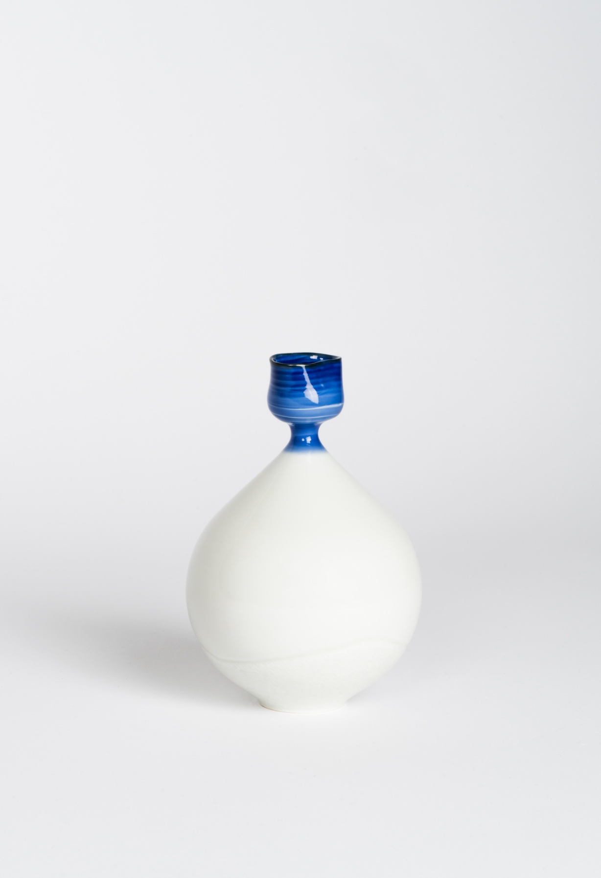 백자, 염화안료, 투명유, 1250°C 산화소성, 쪽물 염색 / 2023